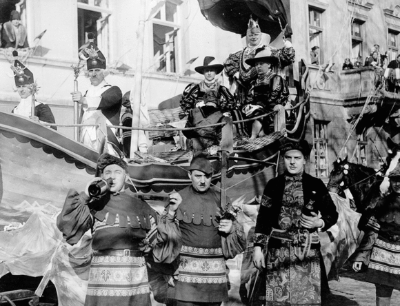 Rosenmontag 1927. Beim „Brav-Jonge-Ball“ eines Kegelklubs stadtbekannter Männer im Hotel „Bergischen Löwen“ fuhr der Wirt Willy Oberembt als Prinz Karneval hoch auf einem Lastkraftwagen in den großen „Marien-Saal“ ein, kutschiert von Peter Müller, dem Vater unseres heutigen 1. Vorsitzenden. Der „Marien-Saal“ fasste damals noch 1.200 Besucher an Tischen und war dem CASINO der „Gesellschaft Erholung “ angeschlossen, die 2001 ihr 150-jähriges Bestehen feierte.