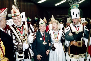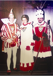 Um es kurz zu machen: der verdutzte Polizist war Willi Nollen, der mit höchster Genehmigung des damaligen Ministerpräsidenten Franz Meyers wenige Tage später den närrischen Thron bestieg und zusammen mit Bauer Helge Küsgen und seiner Jungfrau Ute Fuchs für eine unvergessene und glanzvolle „Regierungszeit“ sorgte.